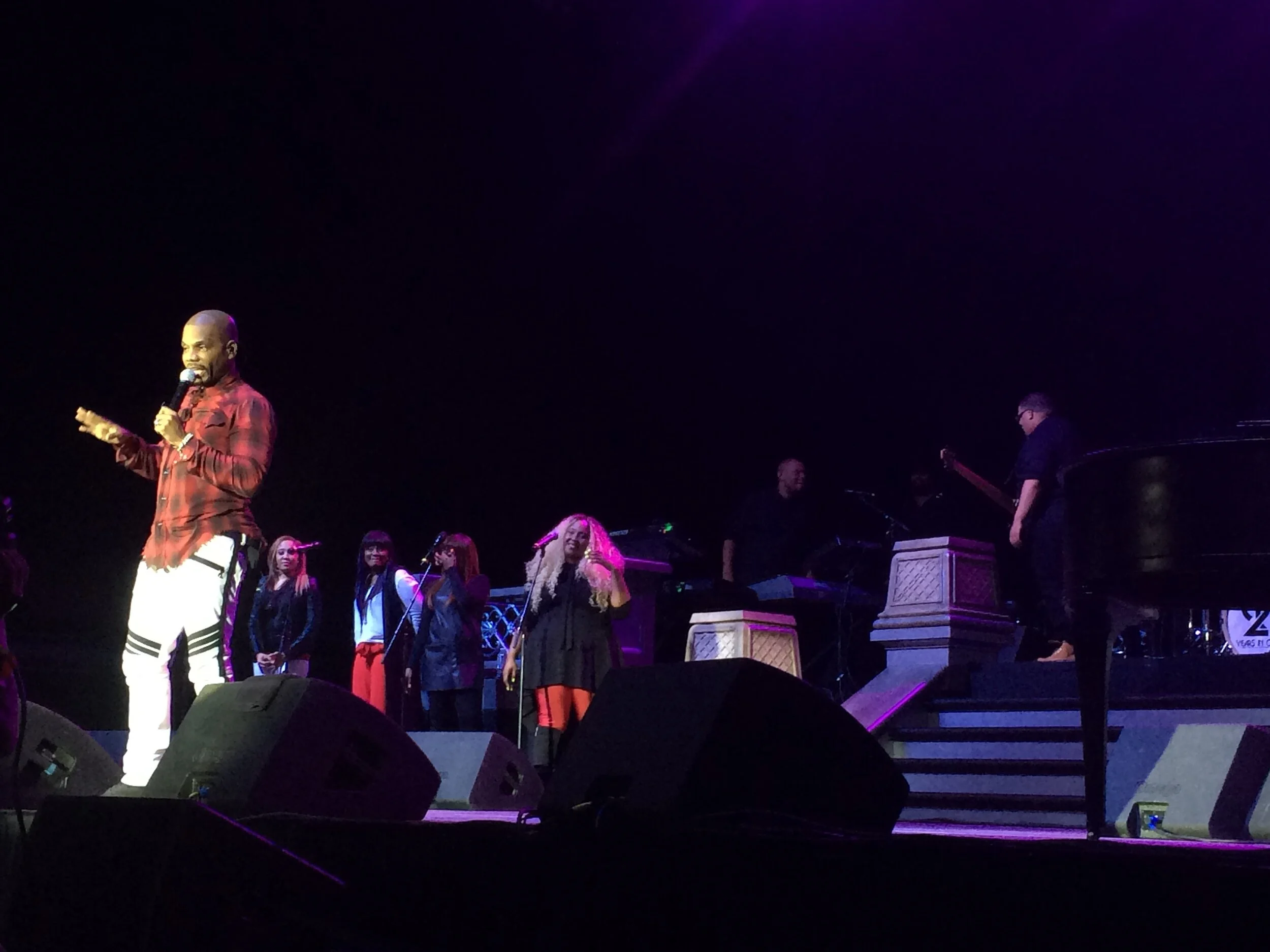 Paying homage to Gospel artists that came before Kirk Franklin, the concert began with songs played over the sound system by Andrae Crouch – Soon and Very Soon and The Clark Sisters – I’m Looking For A Miracle, both of which were deemed as being profane – or too worldly – for the then climate of Gospel music. Like Walter Hawkins and The Clark Sisters who came before him, Franklin follows in this lineage of Gospel artists that have musically pushed the envelope. After the recorded portion, a recorded conversation between Kirk Franklin and his 10-year old self began to play, where the younger Kirk Franklin says, “I want to make gospel music, but I want to make people dance too!”